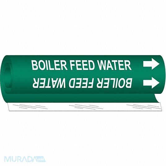 Pipe Marker Pipe Marker Mounting Style Wrap-Around Pipe Marker Pipe Marker Legend Boiler Feed Water Legend Text Color White Character Height 3/4 in Background Color Green With or Without Arrows With