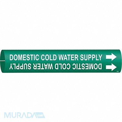 Pipe Marker Pipe Marker Mounting Style Snap-On Pipe Marker Pipe Marker Legend Domestic Cold Water Supply Legend Text Color White Character Height 1 1/4 in Background Color Green With or Without Arrows With