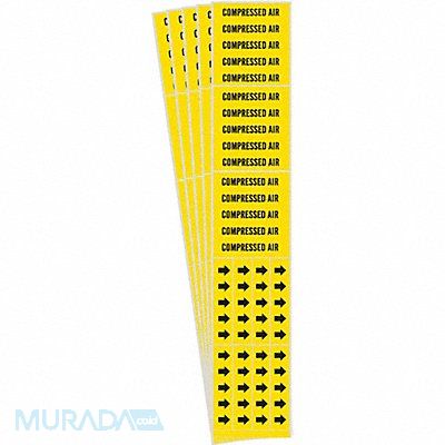 Pipe Marker Pipe Marker Mounting Style Adhesive Pipe Marker Pipe Marker Legend Compressed Air Legend Text Color Black IIAR System Abbreviation Not Applicable IIAR Phase Not Applicable IIAR Pressure Level Not Applicable Character Height 1/2 in Background Color Yellow With or Without Arrows With Package Quantity 5