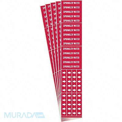 Pipe Marker Pipe Marker Mounting Style Adhesive Pipe Marker Pipe Marker Legend Sprinkler Water Legend Text Color White IIAR System Abbreviation Not Applicable IIAR Phase Not Applicable IIAR Pressure Level Not Applicable Character Height 1/2 in Background Color Red With or Without Arrows With Package Quantity 5