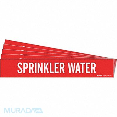 Pipe Marker Pipe Marker Mounting Style Adhesive Pipe Marker Pipe Marker Legend Sprinkler Water Legend Text Color White IIAR System Abbreviation Not Applicable IIAR Phase Not Applicable IIAR Pressure Level Not Applicable Character Height 3 1/2 in Background Color Red With or Without Arrows Without Package Quantity 5
