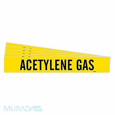 Pipe Marker Pipe Marker Mounting Style Adhesive Pipe Marker Pipe Marker Legend Acetylene Gas Legend Text Color Black IIAR System Abbreviation Not Applicable IIAR Phase Not Applicable IIAR Pressure Level Not Applicable Character Height 3 1/2 in Background Color Yellow With or Without Arrows Without Package Quantity 5