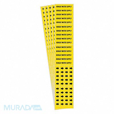 Pipe Marker Pipe Marker Mounting Style Adhesive Pipe Marker Pipe Marker Legend Reheat Water Supply Legend Text Color Black Character Height 1/2 in Background Color Yellow With or Without Arrows With Package Quantity 5