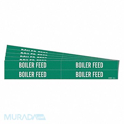 Pipe Marker Pipe Marker Mounting Style Adhesive Pipe Marker Pipe Marker Legend Boiler Feed Legend Text Color White Character Height 3/4 in Background Color Green With or Without Arrows Without Package Quantity 5