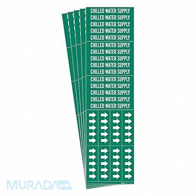 Pipe Marker Pipe Marker Mounting Style Adhesive Pipe Marker Pipe Marker Legend Chilled Water Supply Legend Text Color White Character Height 1/2 in Background Color Green With or Without Arrows With Package Quantity 5