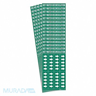 Pipe Marker Pipe Marker Mounting Style Adhesive Pipe Marker Pipe Marker Legend Hot Water Recirculation Legend Text Color White Character Height 1/2 in Background Color Green With or Without Arrows With Package Quantity 5