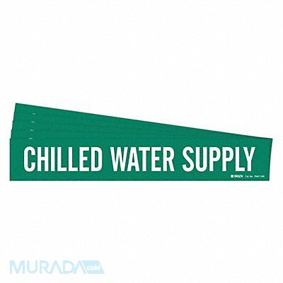 Pipe Marker Pipe Marker Mounting Style Adhesive Pipe Marker Pipe Marker Legend Chilled Water Supply Legend Text Color White Character Height 3 1/2 in Background Color Green With or Without Arrows Without Package Quantity 5