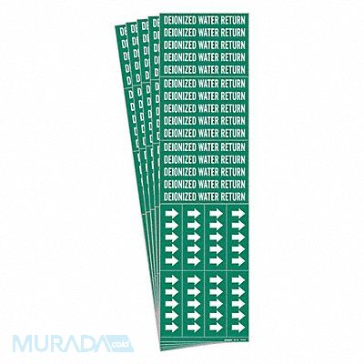 Pipe Marker Pipe Marker Mounting Style Adhesive Pipe Marker Pipe Marker Legend Deionized Water Return Legend Text Color White Character Height 1/2 in Background Color Green With or Without Arrows With Package Quantity 5