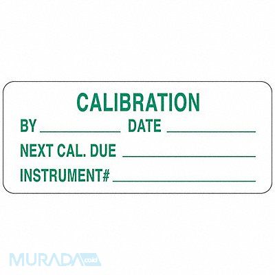 Inspection Label Adhesive Adhesive Adhesive Material Acrylic Adhesive Type Permanent Adhesive Label Color Green Label Diameter Not Applicable Label Height 5/8 in Label Material Polyester Label Shape Rectangle Label Width 1 1/2 in Language English Number of Labels 14 Preprinted Legend Calibration By Date Next Cal. Due Instrument# Product Type Inspection Label Subject Matter Identification Indoor/Outdoor Usage Indoor Material Properties Laser Toner-Receptive
