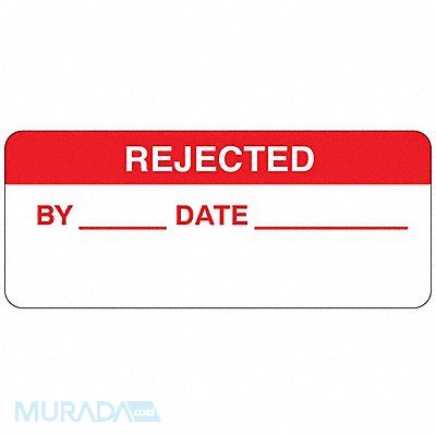 Inspection Label Adhesive Adhesive Adhesive Material Acrylic Adhesive Type Permanent Adhesive Label Color Red on White Label Diameter Not Applicable Label Height 5/8 in Label Material Polyester Label Shape Rectangle Label Width 1 1/2 in Language English Number of Labels 364 Preprinted Legend Rejected By Date Product Type Inspection Label Subject Matter Rejected Indoor/Outdoor Usage Indoor Material Properties Laser Toner-Receptive