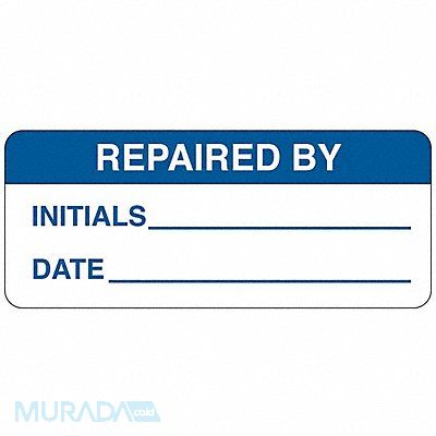 Inspection Label Adhesive Adhesive Adhesive Material Acrylic Adhesive Type Permanent Adhesive Label Color Blue on White Label Diameter Not Applicable Label Height 5/8 in Label Material Polyester Label Shape Rectangle Label Width 1 1/2 in Language English Number of Labels 364 Preprinted Legend Repaired By Initials Date Product Type Inspection Label Subject Matter Repaired Indoor/Outdoor Usage Indoor Material Properties Laser Toner-Receptive