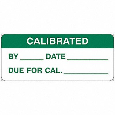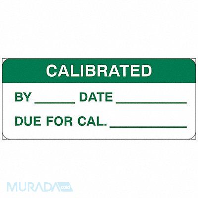 Inspection Label Adhesive Adhesive Adhesive Material Acrylic Adhesive Type Permanent Adhesive Label Color Green on White Label Diameter Not Applicable Label Height 5/8 in Label Material Polyester Label Shape Rectangle Label Width 1 1/2 in Language English Number of Labels 364 Preprinted Legend Calibrated By Date Due Product Type Inspection Label Subject Matter Calibration Indoor/Outdoor Usage Indoor Material Properties Laser Toner-Receptive