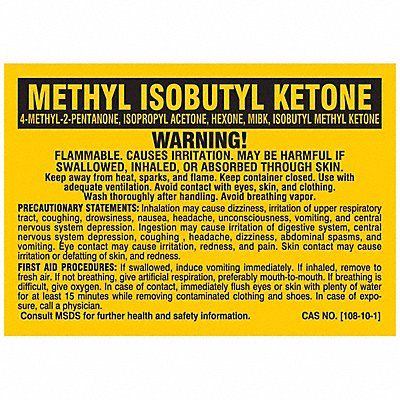 Label Adhesive Adhesive Adhesive Material Acrylic Adhesive Properties Permanent Adhesive Background Color Yellow Hazard Communication Standard NFPA Height 2 in Kit Contents Not Applicable Lamination Type Laminated Language English Material Polyester Material Properties Not Applicable Maximum Service Temperature 230 Degrees F Minimum Service Temperature -40 Degrees F Mounting Type Adhesive Preprinted Text Methyl Isobutyl Ketone Product Type NFPA Label Standards UNSPC 55121606