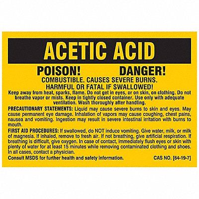 Label Adhesive Adhesive Adhesive Material Acrylic Adhesive Properties Permanent Adhesive Background Color Yellow Hazard Communication Standard NFPA Height 2 in Kit Contents Not Applicable Lamination Type Laminated Language English Material Polyester Material Properties Not Applicable Maximum Service Temperature 230 Degrees F Minimum Service Temperature -40 Degrees F Mounting Type Adhesive Preprinted Images No Image Preprinted Text Acetic Acid Product Type NFPA Label