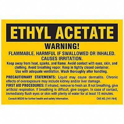 Label Adhesive Adhesive Adhesive Material Acrylic Adhesive Properties Permanent Adhesive Background Color Yellow Hazard Communication Standard NFPA Height 3 1/2 in Kit Contents Not Applicable Lamination Type Laminated Language English Material Polyester Material Properties Not Applicable Maximum Service Temperature 230 Degrees F Minimum Service Temperature -40 Degrees F Mounting Type Adhesive Preprinted Images No Image Preprinted Text Ethyl Acetate Product Type NFPA Label