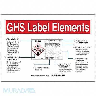GHS Sign GHS Label Elements Polyester Height 10 in Width 14 in Header GHS Label Elements Language English Sign Shape Rectangle