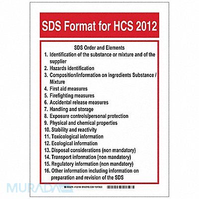 SDS Sign SDS Format SDS Order and Elements Polyester Height 14 in Width 10 in Header Sds Format For Hcs 2012 Language English Sign Shape Rectangle