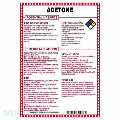 Chemical Sign Acetone Potential Hazards Fiberglass Height 10 in Width 7 in Header No Header Legend Style Symbol and Text Language English Mounting Style Surface Thickness 0.1 in Sign Shape Rectangle Operating Temp Range -40 Degrees to 194 Degrees F Retroreflective Grade Not Retroreflective