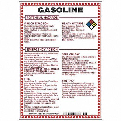 Chemical Sign Gasoline Potential Hazards Fiberglass Height 10 in Width 7 in Header No Header Legend Style Symbol and Text Language English Mounting Style Surface Thickness 0.1 in Sign Shape Rectangle Operating Temp Range -40 Degrees to 194 Degrees F Retroreflective Grade Not Retroreflective
