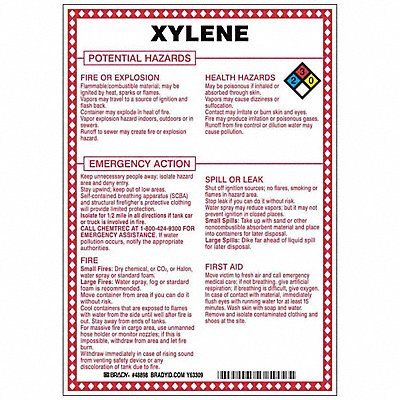 Chemical Sign Xylene Potential Hazards Fiberglass Height 10 in Width 7 in Header No Header Legend Style Symbol and Text Language English Mounting Style Surface Thickness 0.1 in Sign Shape Rectangle Operating Temp Range -40 Degrees to 194 Degrees F Retroreflective Grade Not Retroreflective