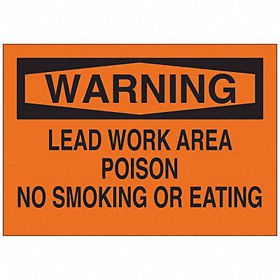 Chemical Sign Lead Work Area Poison No Smoking Or Eating Fiberglass Height 7 in Width 10 in Header Warning Legend Style Text Language English Mounting Style Surface Thickness 0.1 in Sign Shape Rectangle Operating Temp Range -40 Degrees to 194 Degrees F Retroreflective Grade Not Retroreflective