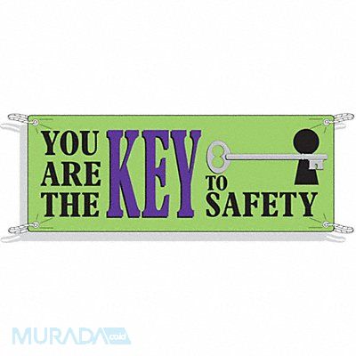 Safety Banner Shape Horizontal Rectangle Safety Banner Legend You Are The Key To Safety Sign Legend Style Symbol and Text Printed Language English Background Color Green Number of Printed Sides 1 Width 120 in Height 48 in Thickness 0.055 in