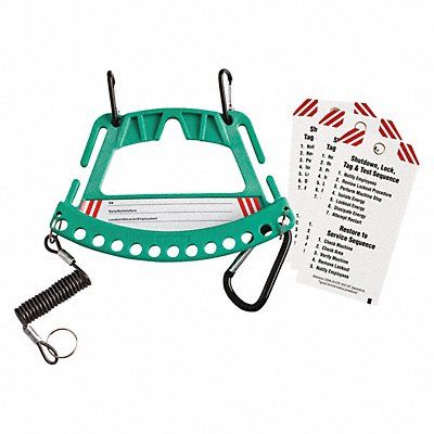 Lockout Station Cable Lockouts Included Not Applicable Cover Type Open Front Electrical Lockouts Included Not Applicable Filled No Number of Hasps Included 0 Number of Lockouts Included 7 Number of Padlocks Included 0 Number of Tags Included 3 Visibility Inside None Language English French Spanish Mount Type Not Applicable Background Color Green Includes (1) Carrier with (3) Clips (3) Lo Procedure Template Tags Key Holder