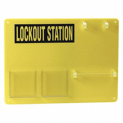 Lockout Board Cable Lockouts Included Not Applicable Cover Type Open Front Electrical Lockouts Included Not Applicable Filled No Number of Hasps Included 0 Number of Lockouts Included 0 Number of Padlocks Included 0 Number of Tags Included 0 Visibility Inside Board Only Language English Mount Type Wall Mount Background Color Yellow Legend Lockout Station Legend Color Yellow Legend Type Text Material Acrylic Mounting Location Wall Number of Compartments 2 Number of Hooks 2