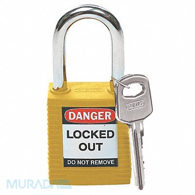 Lockout Padlock Body Color Yellow Body Height 1 3/4 in Body Material Nylon Body Thickness 41/50 in Body Width 1 1/2 in Header Danger Horizontal Shackle Clearance 4/5 in Key Style Standard Key Type Keyed Alike Non-Removable Key Yes Resistance Properties Chemical Resistant Corrosion Resistant Temperature Resistant Shackle Diameter 1/4 in Shackle Height 1 1/2 in Shackle Material Hardened Steel Shackle Type Open Vertical Shackle Clearance 1 1/2 in Width Across Shackle 3/4 in