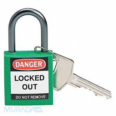 Lockout Padlock Body Color Green Body Height 1 2/5 in Body Material Nylon Body Thickness 5/8 in Body Width 1 1/5 in Header Danger Key Style Standard Key Type Keyed Alike Non-Removable Key Yes Resistance Properties Chemical Resistant Corrosion Resistant Temperature Resistant Shackle Diameter 1/5 in Shackle Height 1 in Shackle Material Aluminum Shackle Type Open Vertical Shackle Clearance 1 in Width Across Shackle 3/4 in Body Shape Rectangular