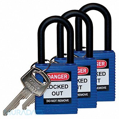 Lockout Padlock Body Color Blue Body Height 1 3/4 in Body Material Nylon Body Thickness 41/50 in Body Width 1 1/2 in Header Danger Horizontal Shackle Clearance 4/5 in Key Style Standard Key Type Keyed Alike Non-Removable Key Yes Resistance Properties Chemical Resistant Corrosion Resistant Temperature Resistant Shackle Diameter 1/4 in Shackle Height 1 1/2 in Shackle Material Nylon Shackle Type Open Vertical Shackle Clearance 1 1/2 in Width Across Shackle 3/4 in