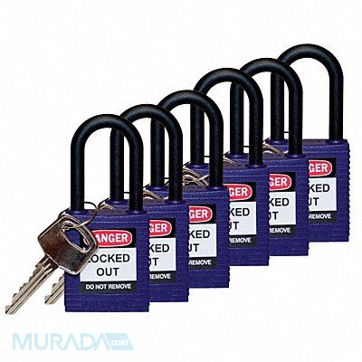 H1707 Lockout Padlock Body Color Purple Body Height 1 3/4 in Body Material Nylon Body Thickness 41/50 in Body Width 1 1/2 in Header Danger Horizontal Shackle Clearance 4/5 in Key Style Standard Key Type Keyed Alike Non-Removable Key Yes Resistance Properties Chemical Resistant Corrosion Resistant Temperature Resistant Shackle Diameter 1/4 in Shackle Height 1 1/2 in Shackle Material Nylon Shackle Type Open Vertical Shackle Clearance 1 1/2 in Width Across Shackle 3/4 in