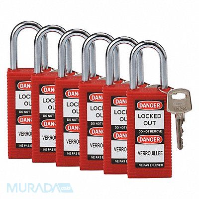 Lockout Padlock Body Color Red Body Height 3 in Body Material Nylon Body Thickness 41/50 in Body Width 1 1/2 in Header Danger Horizontal Shackle Clearance 4/5 in Key Style Standard Key Type Keyed Alike Non-Removable Key Yes Resistance Properties Chemical Resistant Corrosion Resistant Temperature Resistant Shackle Diameter 1/4 in Shackle Height 1 1/2 in Shackle Material Hardened Steel Shackle Type Open Vertical Shackle Clearance 1 1/2 in Width Across Shackle 3/4 in