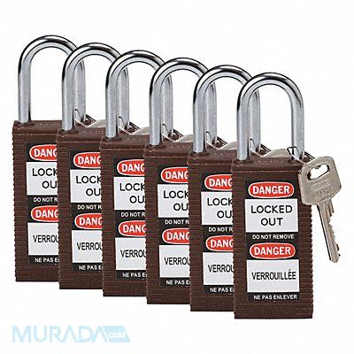 Lockout Padlock Body Color Brown Body Height 3 in Body Material Nylon Body Thickness 41/50 in Body Width 1 1/2 in Header Danger Horizontal Shackle Clearance 4/5 in Key Style Standard Key Type Keyed Alike Non-Removable Key Yes Resistance Properties Chemical Resistant Corrosion Resistant Temperature Resistant Shackle Diameter 1/4 in Shackle Height 1 1/2 in Shackle Material Hardened Steel Shackle Type Open Vertical Shackle Clearance 1 1/2 in Width Across Shackle 3/4 in