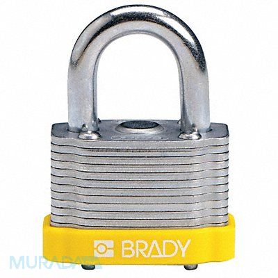 Keyed Padlock Body Color Yellow Body Height 1 1/10 in Body Material Steel Body Thickness 1 in Body Width 1 7/10 in Header None/No Header Horizontal Shackle Clearance 4/5 in Key Style Standard Key Type Keyed Different Non-Removable Key Yes Resistance Properties Corrosion Resistant Shackle Diameter 1/4 in Shackle Height 3/4 in Shackle Material Hardened Steel Shackle Type Open Vertical Shackle Clearance 3/4 in Width Across Shackle 23/32 in Body Material Coating Laminated