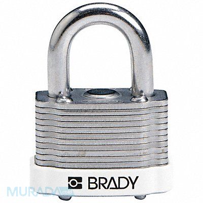 Keyed Padlock Body Color White Body Height 1 1/10 in Body Material Steel Body Thickness 1 in Body Width 1 7/10 in Header None/No Header Horizontal Shackle Clearance 4/5 in Key Style Standard Key Type Keyed Different Non-Removable Key Yes Resistance Properties Corrosion Resistant Shackle Diameter 1/4 in Shackle Height 3/4 in Shackle Material Hardened Steel Shackle Type Open Vertical Shackle Clearance 3/4 in Width Across Shackle 23/32 in Body Material Coating Laminated