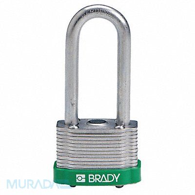 Keyed Padlock Body Color Green Body Height 1 1/10 in Body Material Steel Body Thickness 1 in Body Width 1 7/10 in Header None/No Header Horizontal Shackle Clearance 4/5 in Key Style Standard Key Type Keyed Alike Non-Removable Key Yes Resistance Properties Corrosion Resistant Shackle Diameter 1/4 in Shackle Height 2 in Shackle Material Hardened Steel Shackle Type Extended Vertical Shackle Clearance 2 in Width Across Shackle 3/4 in Body Material Coating Laminated