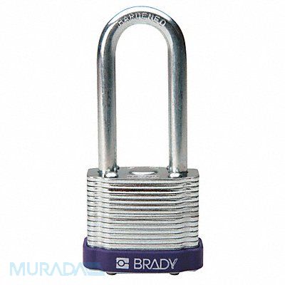 Keyed Padlock Body Color Purple Body Height 1 1/10 in Body Material Steel Body Thickness 1 in Body Width 1 7/10 in Header None/No Header Horizontal Shackle Clearance 4/5 in Key Style Standard Key Type Keyed Alike Non-Removable Key Yes Resistance Properties Corrosion Resistant Shackle Diameter 1/4 in Shackle Height 2 in Shackle Material Hardened Steel Shackle Type Extended Vertical Shackle Clearance 2 in Width Across Shackle 3/4 in Body Material Coating Laminated