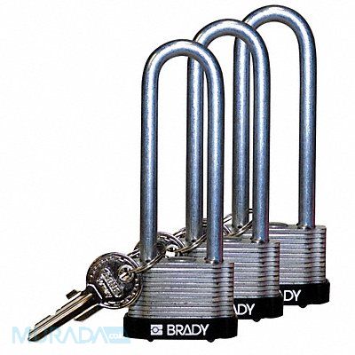 Keyed Padlock Body Color Black Body Height 1 1/10 in Body Material Steel Body Thickness 1 in Body Width 1 7/10 in Header None/No Header Horizontal Shackle Clearance 4/5 in Key Style Standard Key Type Keyed Alike Non-Removable Key Yes Resistance Properties Corrosion Resistant Shackle Diameter 1/4 in Shackle Height 3 in Shackle Material Hardened Steel Shackle Type Extended Vertical Shackle Clearance 3 in Width Across Shackle 3/4 in Body Material Coating Laminated