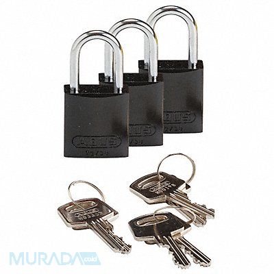 Lockout Padlock Body Color Black Body Height 1 1/4 in Body Material Aluminum Body Thickness 1/2 in Body Width 1 1/4 in Header None/No Header Key Style Standard Key Type Keyed Alike Non-Removable Key Yes Resistance Properties Corrosion Resistant Fade Resistant Shackle Diameter 1/4 in Shackle Height 1 in Shackle Material Aluminum Shackle Type Open Vertical Shackle Clearance 1 in Width Across Shackle 3/4 in Body Material Coating Anodized Control Key Registration Required No
