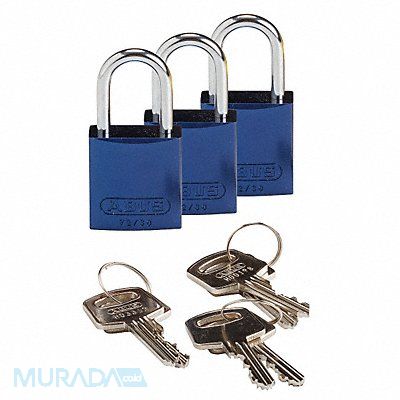 Lockout Padlock Body Color Blue Body Height 1 1/4 in Body Material Aluminum Body Thickness 1/2 in Body Width 1 1/4 in Header None/No Header Key Style Standard Key Type Keyed Alike Non-Removable Key Yes Resistance Properties Corrosion Resistant Fade Resistant Shackle Diameter 1/4 in Shackle Height 1 in Shackle Material Aluminum Shackle Type Open Vertical Shackle Clearance 1 in Width Across Shackle 3/4 in Body Material Coating Anodized Control Key Registration Required No