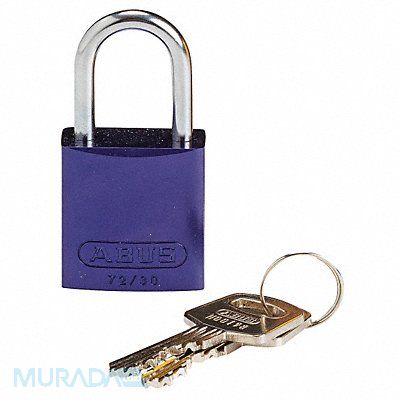 Lockout Padlock Body Color Purple Body Height 1 1/4 in Body Material Aluminum Body Thickness 1/2 in Body Width 1 1/4 in Header None/No Header Key Style Standard Key Type Keyed Different Non-Removable Key Yes Resistance Properties Corrosion Resistant Fade Resistant Shackle Diameter 1/4 in Shackle Height 1 in Shackle Material Aluminum Shackle Type Open Vertical Shackle Clearance 1 in Width Across Shackle 3/4 in Body Material Coating Anodized Control Key Registration Required No
