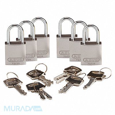Lockout Padlock Body Color Silver Body Height 1 1/4 in Body Material Aluminum Body Thickness 1/2 in Body Width 1 1/4 in Header None/No Header Key Style Standard Key Type Keyed Different Non-Removable Key Yes Resistance Properties Corrosion Resistant Fade Resistant Shackle Diameter 1/4 in Shackle Height 1 in Shackle Material Aluminum Shackle Type Open Vertical Shackle Clearance 1 in Width Across Shackle 3/4 in Body Material Coating Anodized Control Key Registration Required No