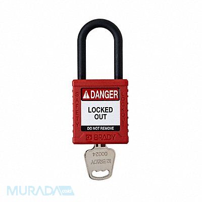 Padlock Body Color Red Body Height 1 77/100 in Body Material Nylon Body Thickness 41/50 in Body Width 1 1/2 in Header Danger Key Style Standard Key Type Keyed Different Non-Removable Key Yes Resistance Properties Not Applicable Shackle Diameter 1/4 in Shackle Height 1 1/2 in Shackle Material Plastic Shackle Type Open Vertical Shackle Clearance 1 1/2 in Width Across Shackle Not Applicable Control Key Registration Required No