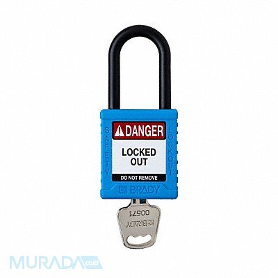 Padlock Body Color Blue Body Height 1 77/100 in Body Material Nylon Body Thickness 41/50 in Body Width 1 1/2 in Header Danger Key Style Standard Key Type Keyed Different Non-Removable Key Yes Resistance Properties Not Applicable Shackle Diameter 1/4 in Shackle Height 1 1/2 in Shackle Material Plastic Shackle Type Open Vertical Shackle Clearance 1 1/2 in Width Across Shackle Not Applicable Control Key Registration Required No