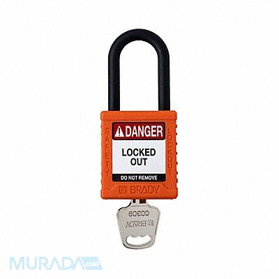 Padlock Body Color Orange Body Height 1 77/100 in Body Material Nylon Body Thickness 41/50 in Body Width 1 1/2 in Header Danger Key Style Standard Key Type Keyed Different Non-Removable Key Yes Resistance Properties Not Applicable Shackle Diameter 1/4 in Shackle Height 1 1/2 in Shackle Material Plastic Shackle Type Open Vertical Shackle Clearance 1 1/2 in Width Across Shackle Not Applicable Control Key Registration Required No