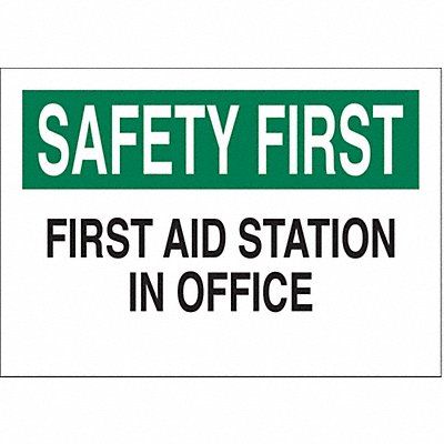 First Aid Sign Sign Subject Matter First Aid Height 10 in Width 14 in Sign Material Polyester Sign Mounting Style Adhesive Surface Header Safety First Legend First Aid Station In Office Printed Language English Sign Shape Rectangle