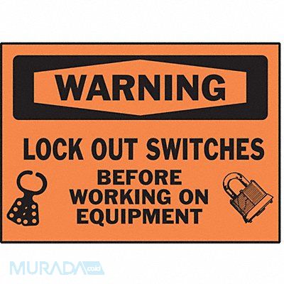 Equipment Label Horizontal Rectangle Number of Printed Sides 1 English Sign Legend Lock Out Switches Before Working On Equipment Sign Legend Style Symbol and Text Package Quantity 5