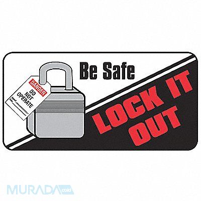 Permanent Adhesive Label Horizontal Rectangle Number of Printed Sides 1 English Sign Format Other Format Sign Legend Be Safe Lock It Out Sign Legend Style Symbol and Text Package Quantity 25
