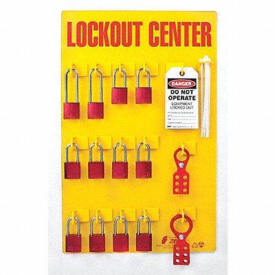 Lockout Station Cable Lockouts Included Not Applicable Cover Type Open Front Electrical Lockouts Included (2) Hasps Filled Yes Number of Hasps Included 2 Number of Lockouts Included 34 Number of Padlocks Included 12 Number of Tags Included 10 Visibility Inside Board Only For Lockout Type General Language English Background Color Yellow